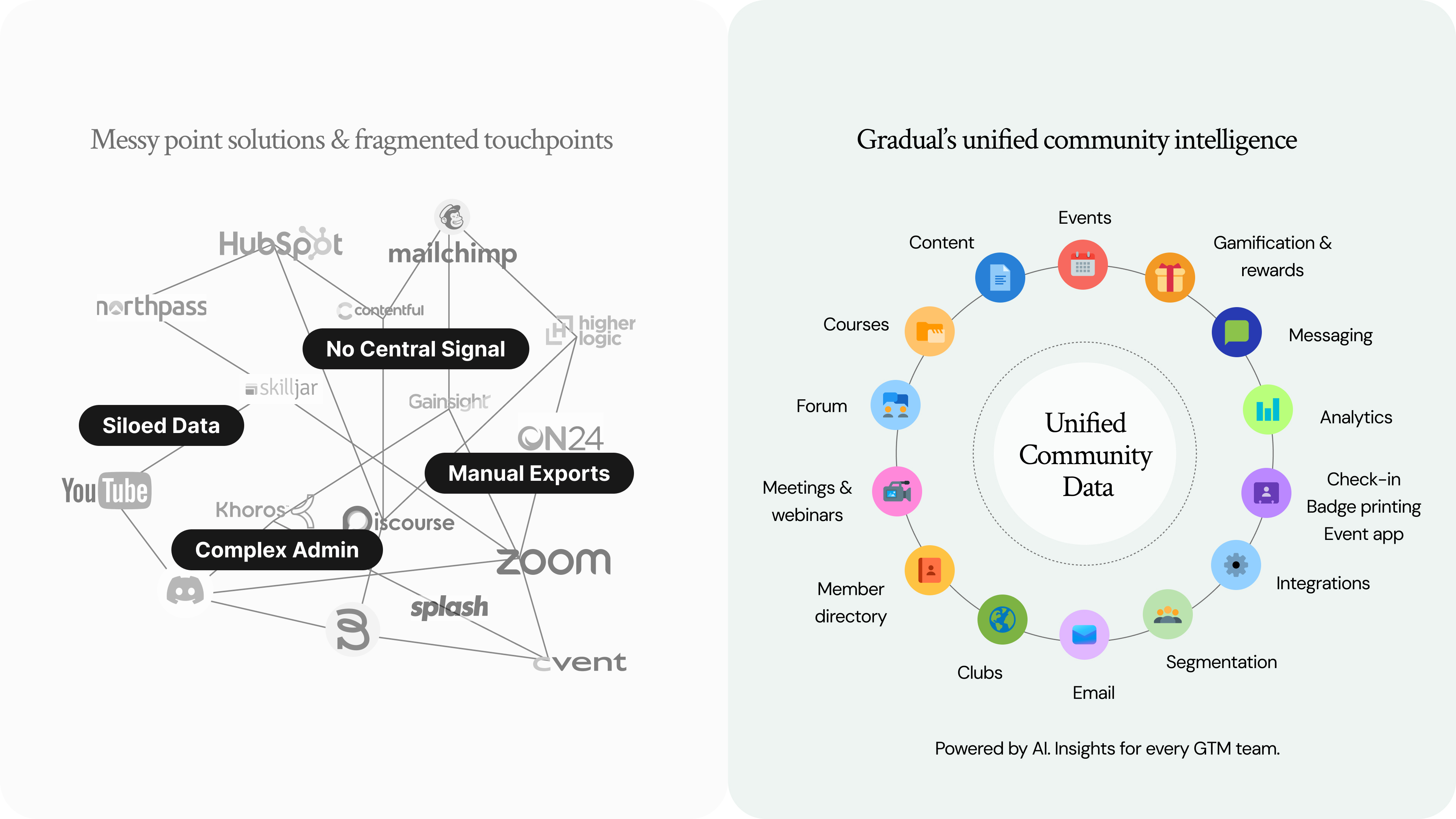 Gradual replaces point solutions with a unified platform designed for community-led growth.